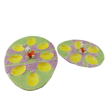 Керамическая тарелка для пасхальных яиц с забавным дизайном кролика Ручная Роспись Тарелка для подарка или украшения яиц кролика