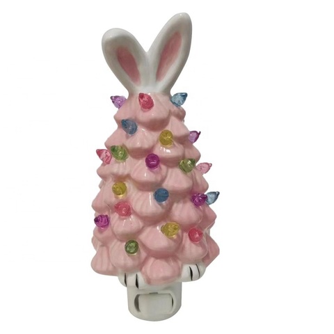 Plugin de luz de noche de árbol de conejito rosa con luces Vintage cerámica Pascua decoración del hogar Color personalizable disponible
