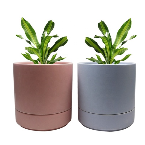 Bắc Âu Hiện Đại Matte Trang Trí Nhà Máy Chậu Gốm Xi Lanh Mọng Nước Chậu Cây Hoa Nồi Với Khay Lỗ Thoát Nước
