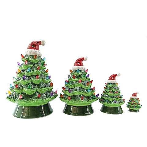 Hand Painted Ceramic Cây giáng sinh với đèn LED trang trí nội thất giáng sinh Đảng Top giáng sinh mũ đỏ