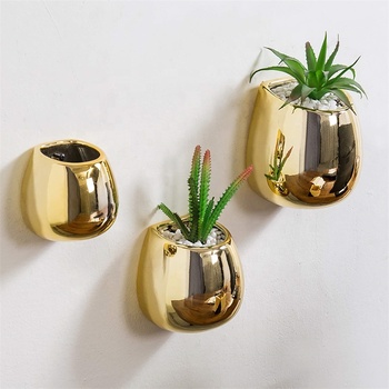 4 인치 벽 마운트 화분 라운드 세라믹 매달려 식물 홀더 장식 꽃 디스플레이 꽃병 즙이 많은 냄비 실내 세트 3