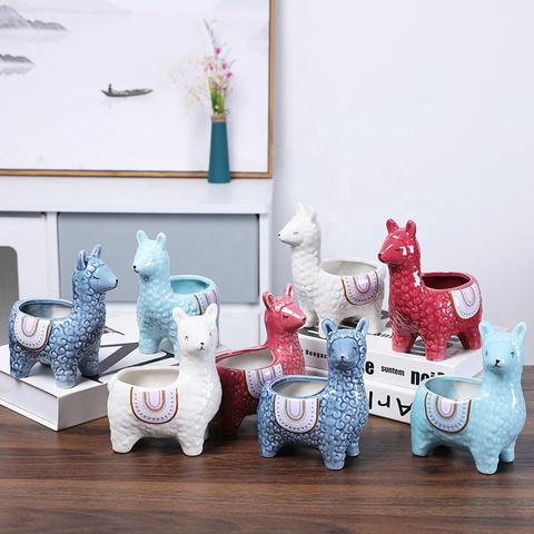 도매 귀여운 세라믹 코끼리 다육 식물 화분 세트 정원이나 가정용 유약 일반 색상 화분