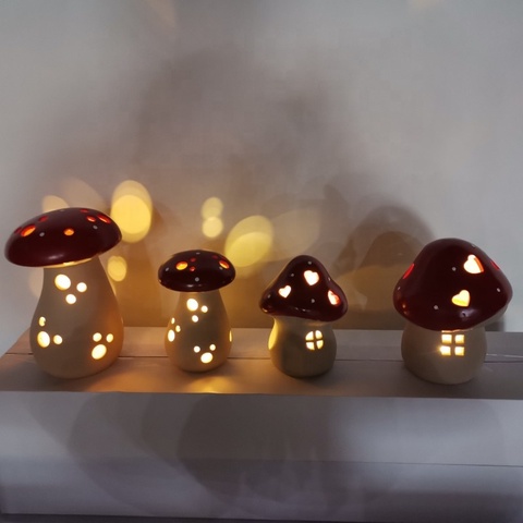 Màu đỏ gốm Nấm Ánh sáng ban đêm nấm đèn độc đáo Cổ Tích Boho bảng đèn quà tặng