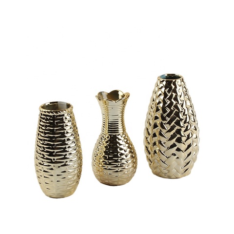Hot Bán Bắc Âu Hiện Đại Sang Trọng Kết Cấu Phong Cách Mạ Vàng Bình Gốm Cho Trang Trí Nội Thất